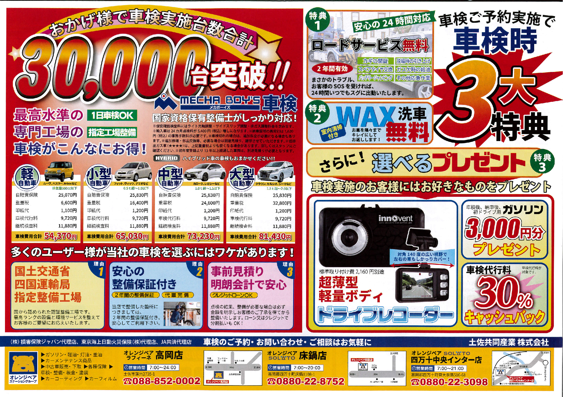 車検・コーティングチラシ(高岡・床鍋・四万十)